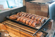 チョリソーという単語を聞くと多くの方は辛いソーセージを思い浮かべるでしょう。でも、それは単なるメキシコ式のチョリソーなんです。チョリパンに挟むチョリソーはアルゼンチン流。牛肉をふんだんに使った極太の粗挽きソーセージです。