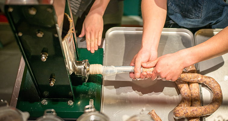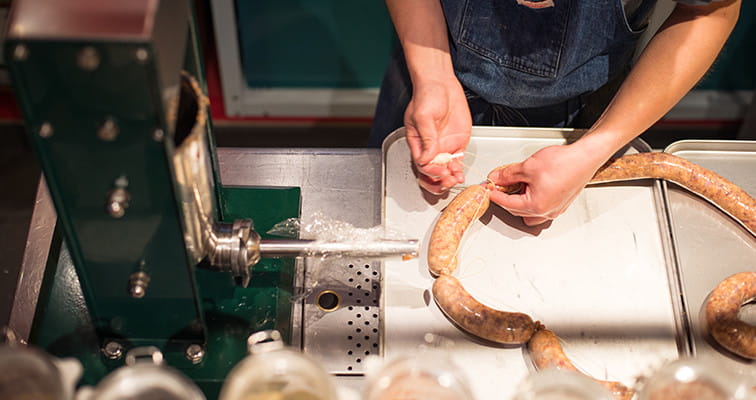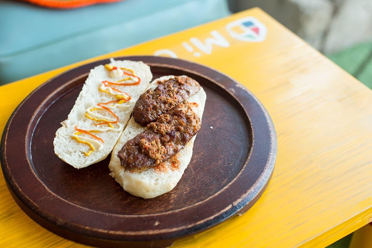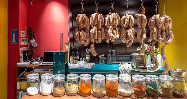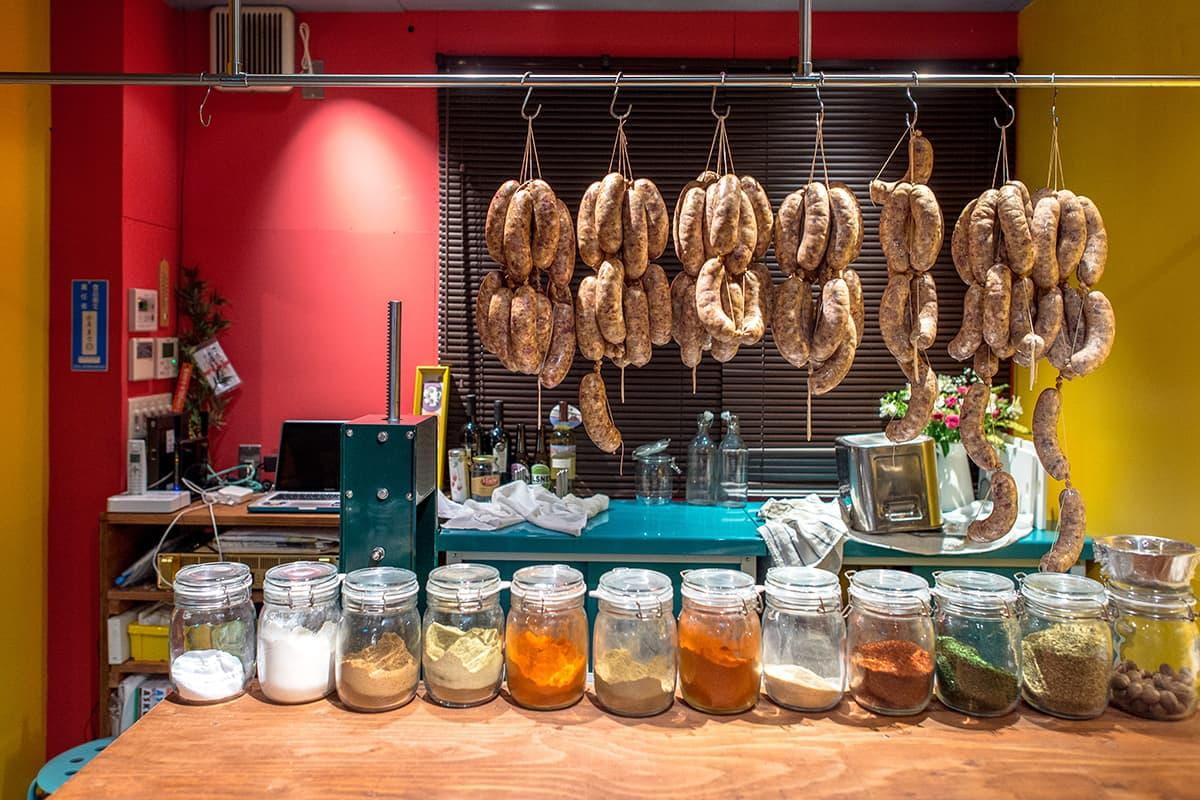 そして、Mi Choripanのチョリソーは本場のアルゼンチン仕込み。店主がブエノスアイレスの修行先で教えてもらった秘伝のレシピをもとに、精肉店から届けられる新鮮なひき肉とおよそ 10種類のスパイスを店内で混ぜ合わせ、その場で豚の腸に詰めています。